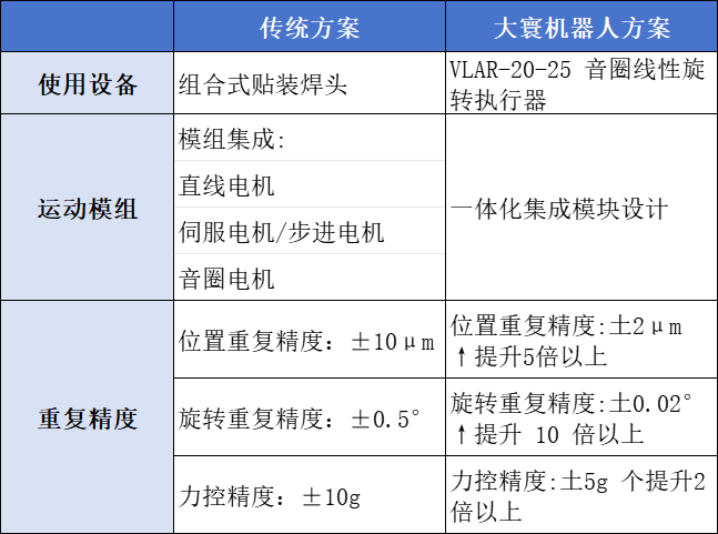 微型電子零部件,對生產(chǎn)組裝要求極高,如攝像頭模組組裝。大寰機器人的音圈線性旋轉(zhuǎn)執(zhí)行器±5g的精確力控和軟著陸有效防止零件損壞;±0.02°的旋轉(zhuǎn)重復定位精度,確保定位組裝的準確,提高整體組裝生產(chǎn)的良率。